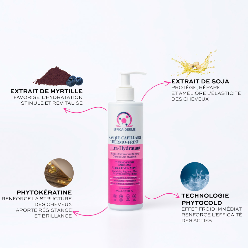 Temps de pose : Laisser agir 3 à 5 minutes. Pour une efficacité renforcée, prolonger le temps de pose afin d’optimiser l’effet froid et ses bienfaits sur la fibre capillaire.