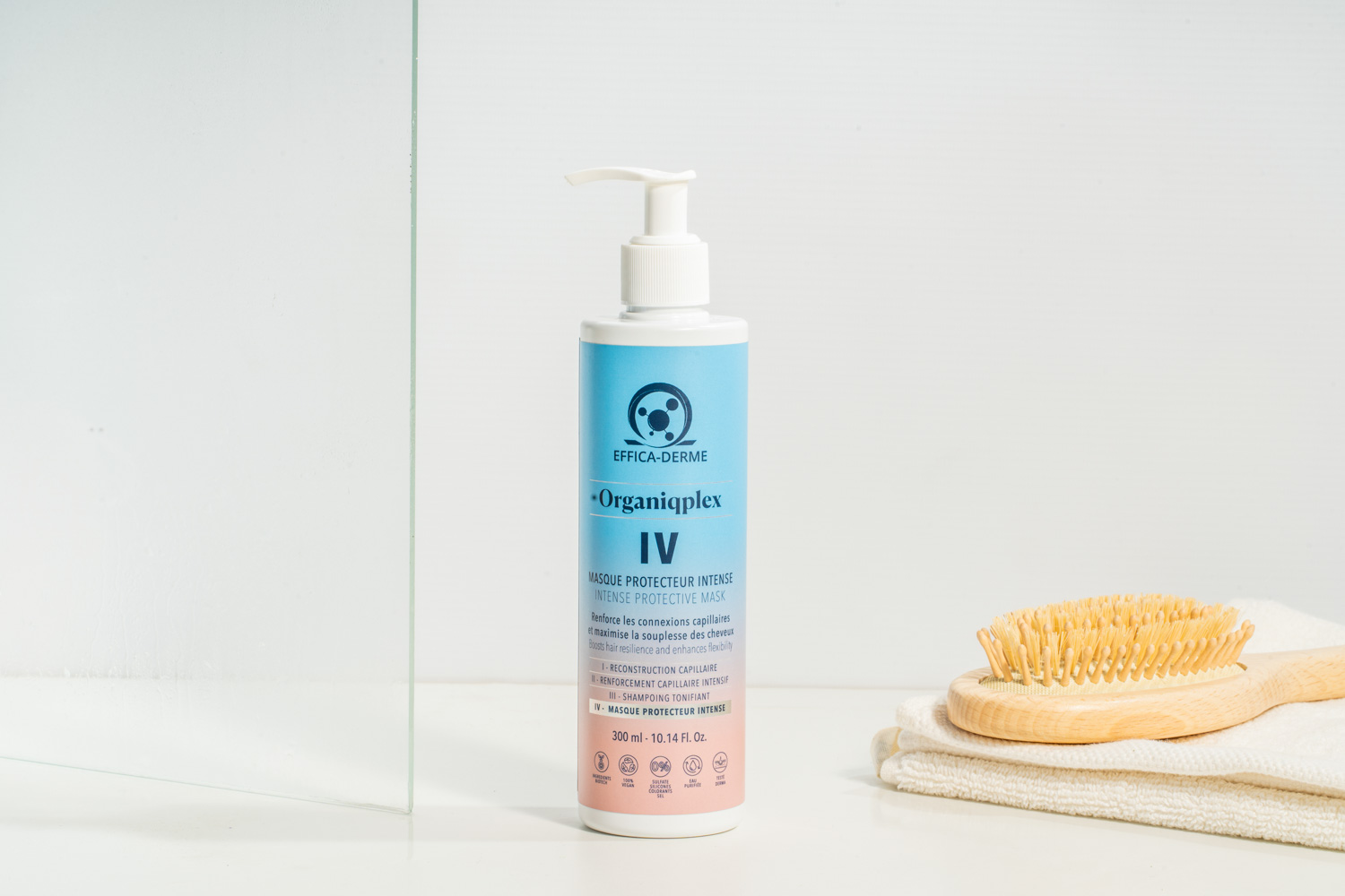 • Organiqplex IV masque protecteur : L’étape ultime pour une chevelure protégée, sublimée et éclatante de santé.